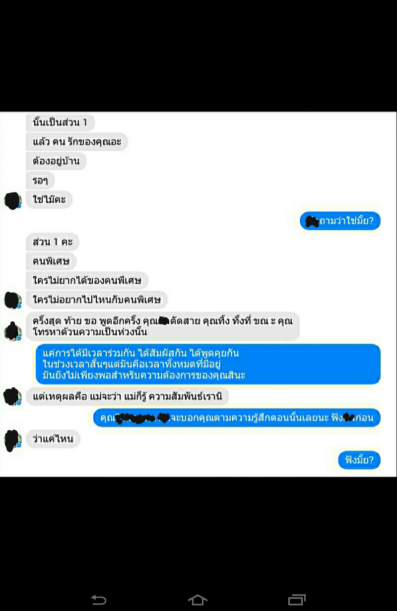 ในบทสนทนาแถบสีเทาคือเค้า แถบสีฟ้าคือเรา
