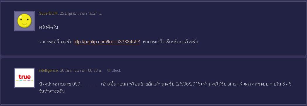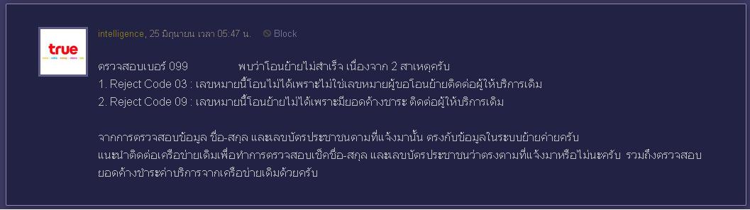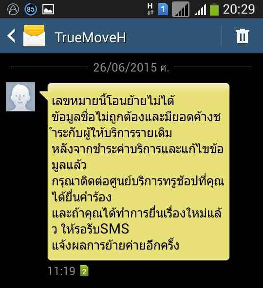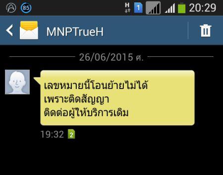 แล้วมาวันจันทร์ที่ 29/6 มีสายจาก true เบอร์ 029008000 โทรเข้ามา แจ้งว่าไม่สามารถย้ายค่ายได้ เพราะติดพพันธสัญญา ให้ติดต่อกลับไปที่ dtac