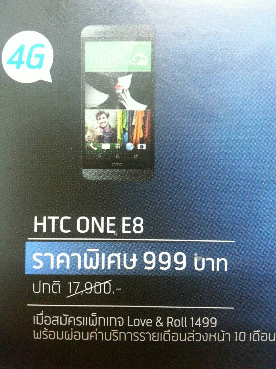 HTC ONE E8 ราคาเครื่อง 999 รายเดือน 1499 ตามโบรชัวของ Dtac ด้านล่าง