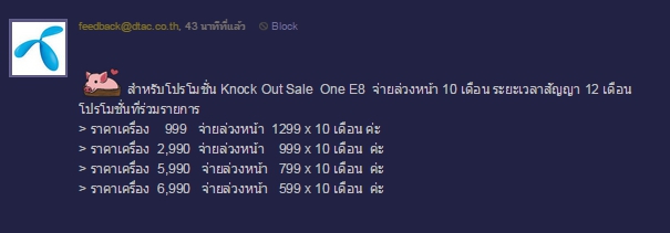 ผิดหวังกับโปรดีแทค Knockout HTC ONE E8