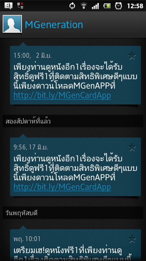 ล่าสุดวันพฤหัสที่แล้วก็ส่ง sms นี้มาอีก