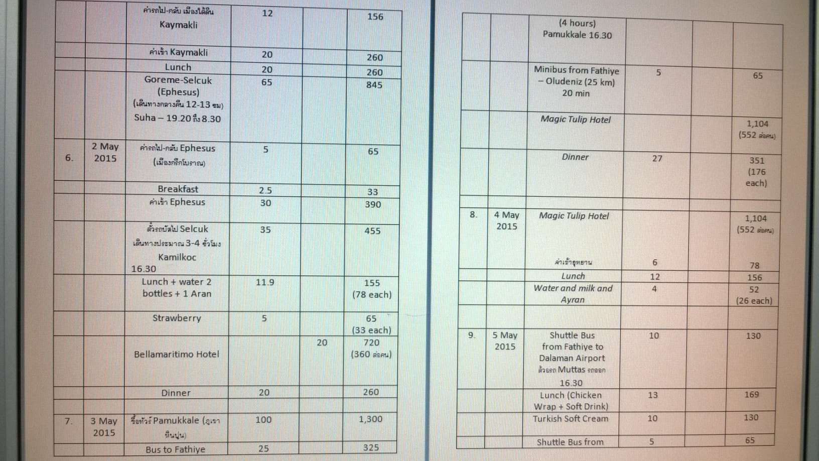 และนี่คือบัญชีรายจ่ายในการเดินทางครั้งนี้คะ ขออภัยด้วยถ้าเห็นไม่ค่อยชัดนะคะ