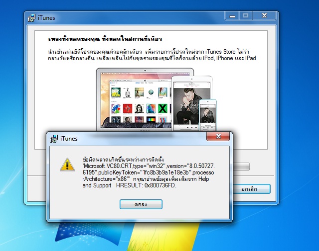 เราพยายามลง iTunes ในคอมแล้วมันก็ลงไม่ได้ค่ะ มันขึ้นหน้าต่างมาแบบนี้ค่ะ