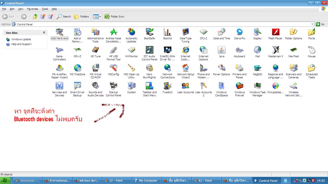 พอ เข้า คอนโทพาเนลเเล้ว หาจุดทีจะตังค่า Bluetooth devicesไม่พบครับ / win xp /