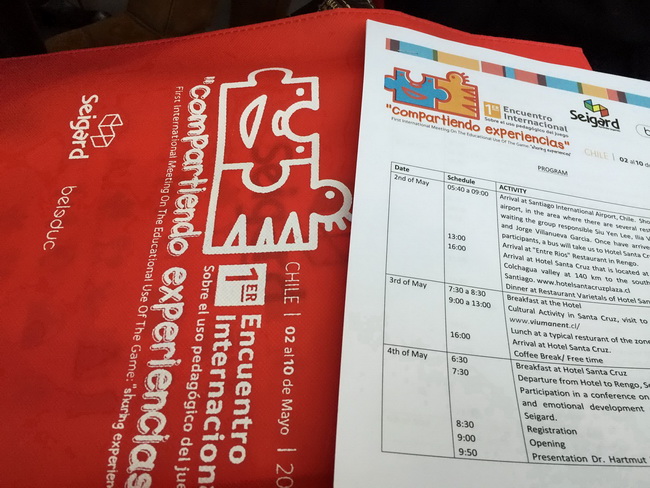 อธิบายสักนิดนะคะ การสัมมนาครั้งนี้จัดขึ้นโดยบริษัทที่ทำธุรกิจเกี่ยวกับสื่อการสอนรายใหญ่ในประเทศชิลี ร่วมมือกับบริษัทผู้ผลิตของเล่นและเกมสำหรับเด็กจากเยอรมัน จัดสัมมนาขึ้นในหัวข้อ