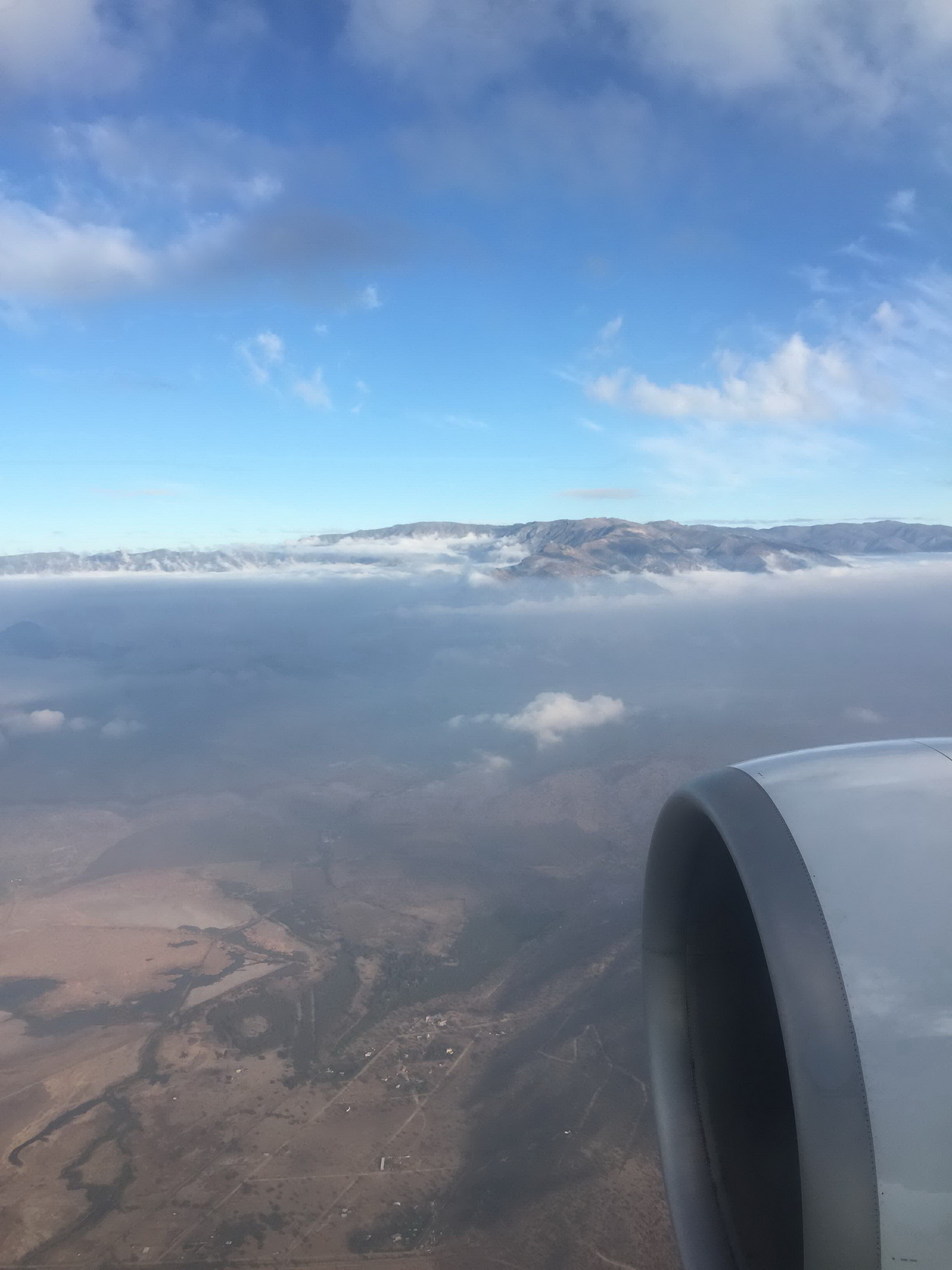 ตอนเครื่องกำลังลดระดับ เห็นภูมิประเทศของชิลีเล็กน้อย เทือกเขาสูงทะลุเมฆกันเลยทีเดียว