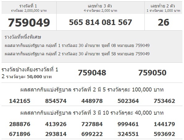 รางวัลที่ 2 : 142165 / 854574 / 448978 / 502364 / 753462