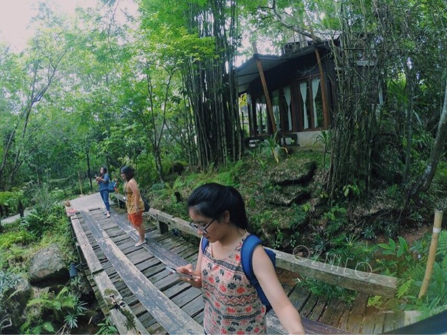 พอมาถึงเจอเลยจร้า สัมผัสแรกบรรยากาศดีมาก ร่มรื่น เย็นสบาย ต้องเดินข้ามสะพานด้วยนะ