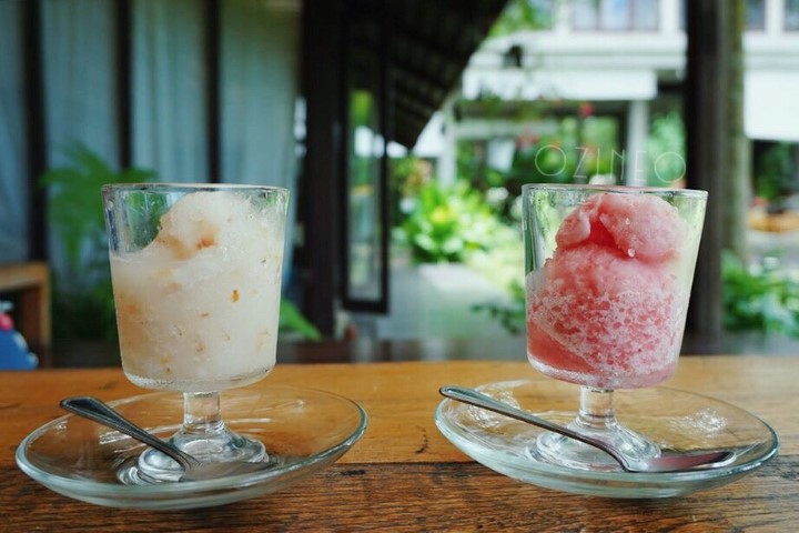 จัดไปไอติมโฮมเมด ลิ้นจี่ (ซ้าย) มะม่วงหาวมะนาวโห่ (ขวา) หวานไปนิดๆ