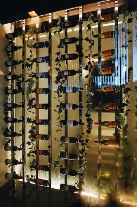 ขากลับเดินผ่านห้องเก็บไวน์ และตกแต่งหน้าห้องด้วยที่เปิดไวน์ เก๋ๆ