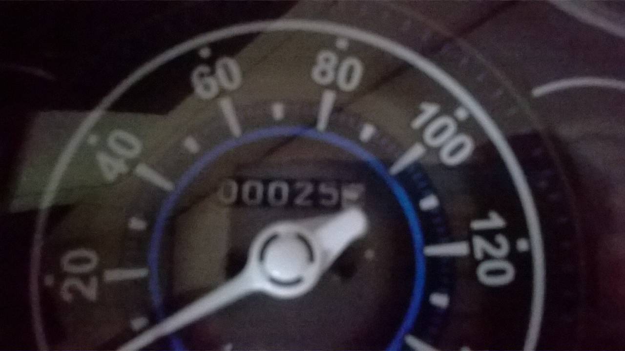 ตอนแรกวิ่งแค่ 8 กิโลเมตรเองครับ แต่ต้องไปทำเรื่องโอนรถเป็นชื่อผมที่ขนส่งจังหวัด เลขไมล์รวมอยู่ที่ 25.5 กิโลเมตร