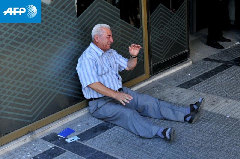 สำนักข่าวเอเอฟพีรายงานว่า นาย Giorgos Chatzifotiadis ชายผู้สูงอายุวัย 77 ปี หนึ่งในผู้ที่ได้รับผลกระทบจากมาตรการควบคุมการจ่ายเงินของรัฐบาลกรีซ เข่าทรุดนั่งร่ำไห้อยู่หน้าธนาคาร หลังจากที่เขาเดินทางไปยังธนาคารมาแล้วถึง 4 แห่ง แต่เขากลับไม่สามารถเบิกเงินบำนาญของเขาและภรรยาได้เต็มจำนวน โดยเขาสามารถเบิกเงินได้เพียง 120 ยูโร (ประมาณ 4,400 บาท) ตามที่รัฐบาลได้กำหนด