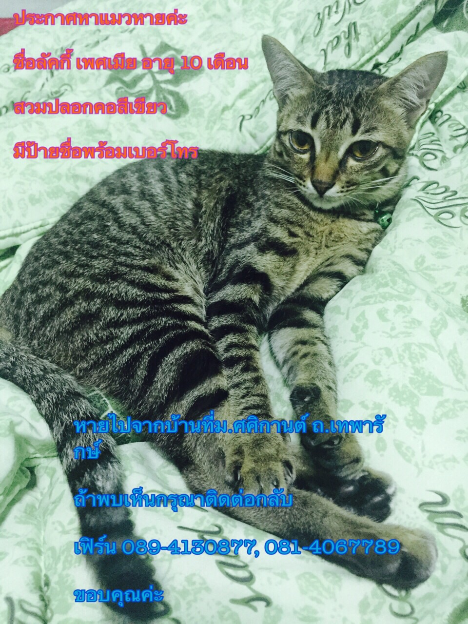 สวัสดีค่ะ ประกาศหาแมวหายจากหมู่บ้านศศิกานต์ ถ.เทพารักษ์ค่ะ
