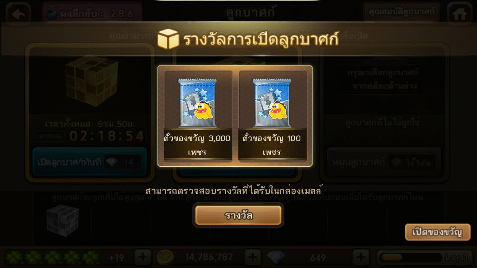 เรื่องมีอยู่ว่า ผมเปิดลูกบาศก์เพชร แล้วยัดผง ปรากฎว่าได้เพชร3100 เพชร ทีแรกนึกว่าได้ทอง 3000 555+