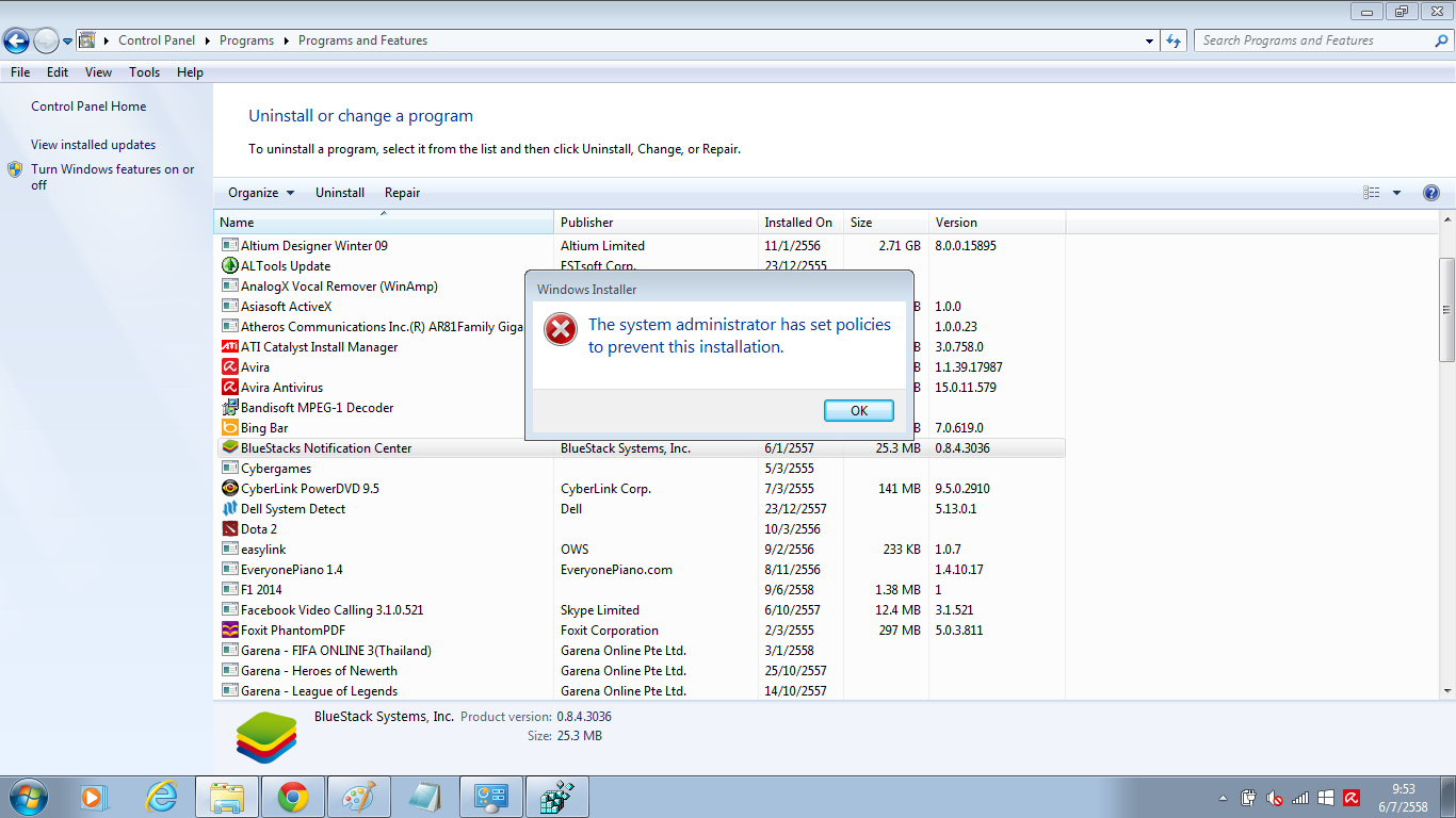 ปัญหา uninstall ไม่ได้ ตามรุปเลยครับ ช่วยหน่อย T^T (window7)