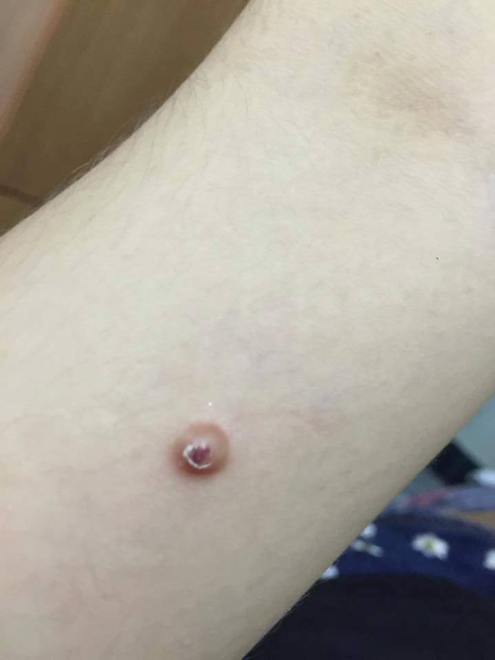 แขนแฟนผมเริ่มจากเป็นตุ่มเล็กๆเหมือนสิวครับพอปล่อยไว้สัก 5 - 6 เดือน จากตุ่มเล็กๆก็เริ่มใหญ่ขึ้นเป็นไตแข็งๆ โดยไม่มีอาการคันหรืออาการใดๆทั้งสิ้น พอเมื่อแฟนผมเกิดการสงสัยจึงได้เอาเข็มเจาะและสกิด แล้วก็บีบ ตอนบีบก้อไม่รู้สึกเจ็บ และไม่มีอะไรออกมา มีเพียงเลือดออกมาเพียงเล็กน้อยครับ ผมเลยอยากรู้ว่าแขนแฟนผมเป็นอะไรครับ