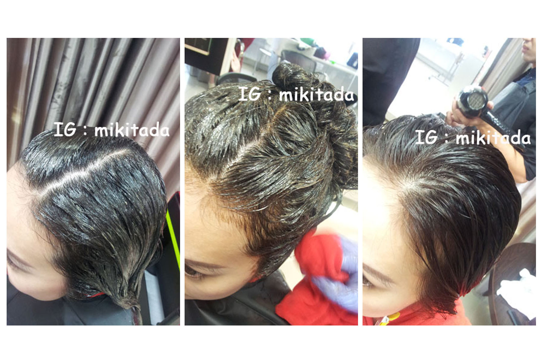 หลังจากนั้นช่างก็บรรจงแบ่งผม และแน่นอนค่ะว่า ช่างก็ตกใจเรื่องความหนาของผม จนต้องขอสีเพิ่ม เบ็จเสร็จใช้ไป 4 กล่องค่ะ แบบว่าผมหนาจริงจัง