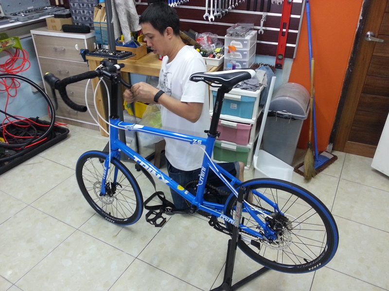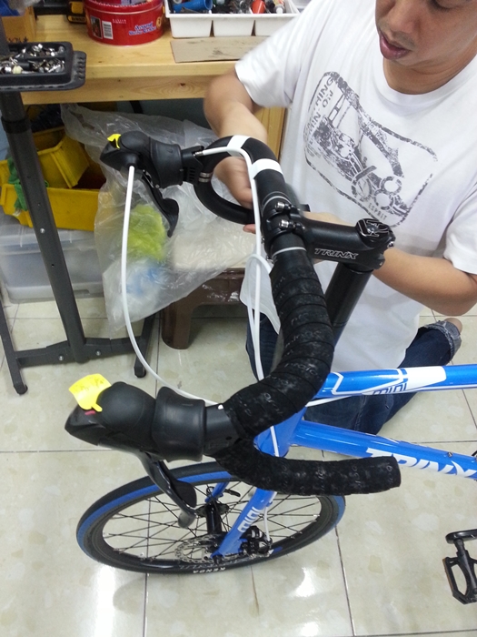 จึงได้เปลี่ยนแฮนด์ของ specialized กับมือเบรคเสือหมอบ shimano Claris