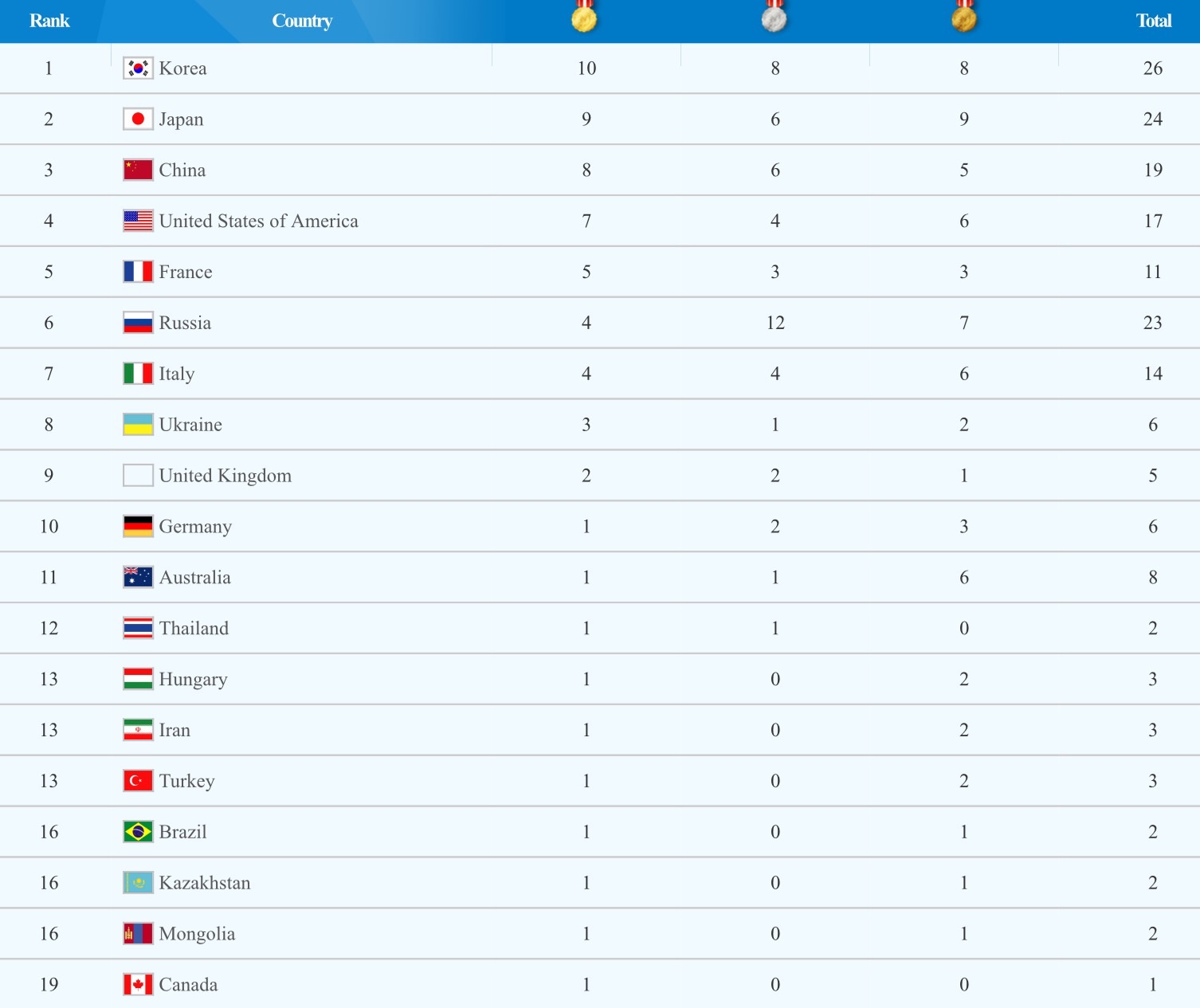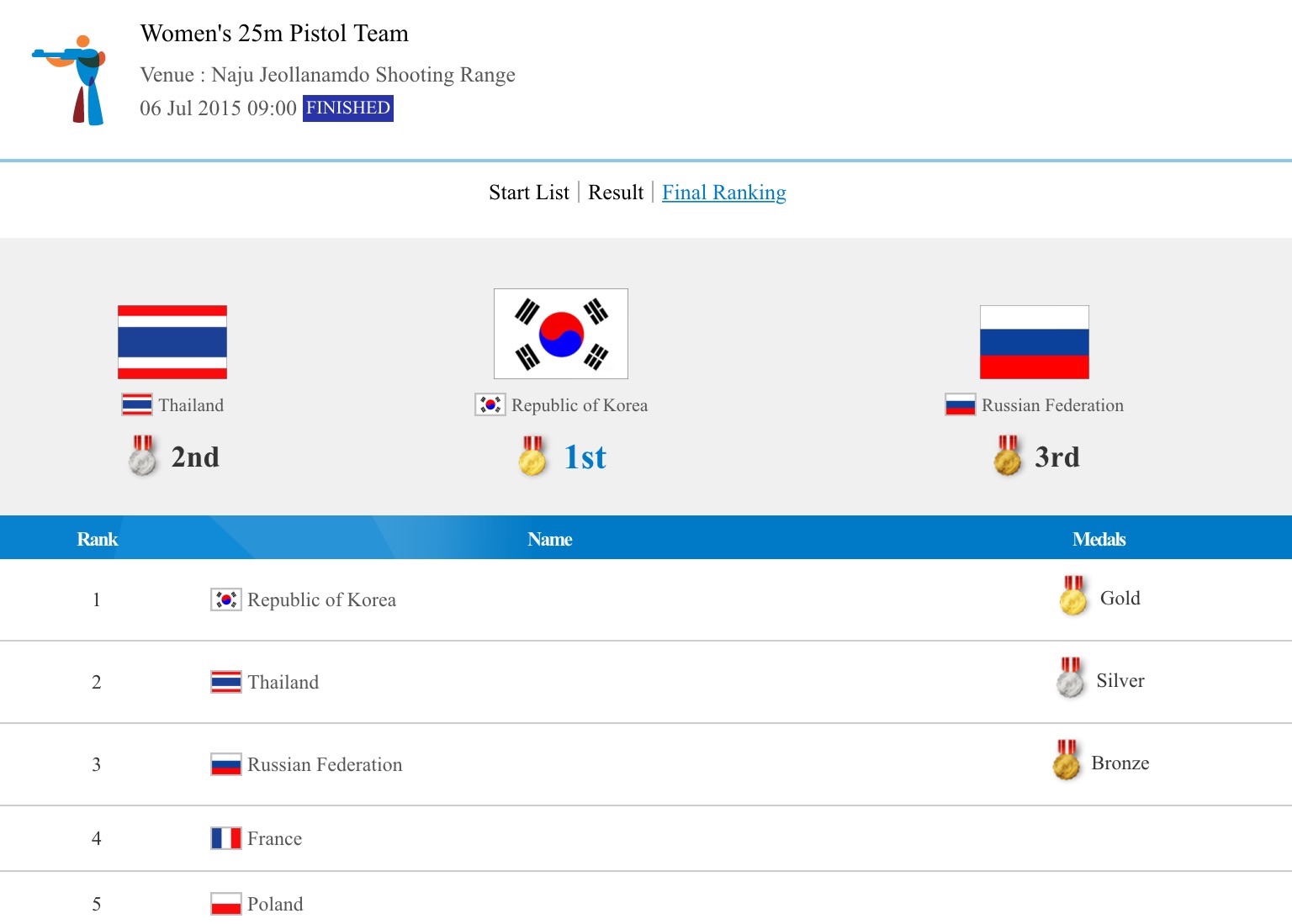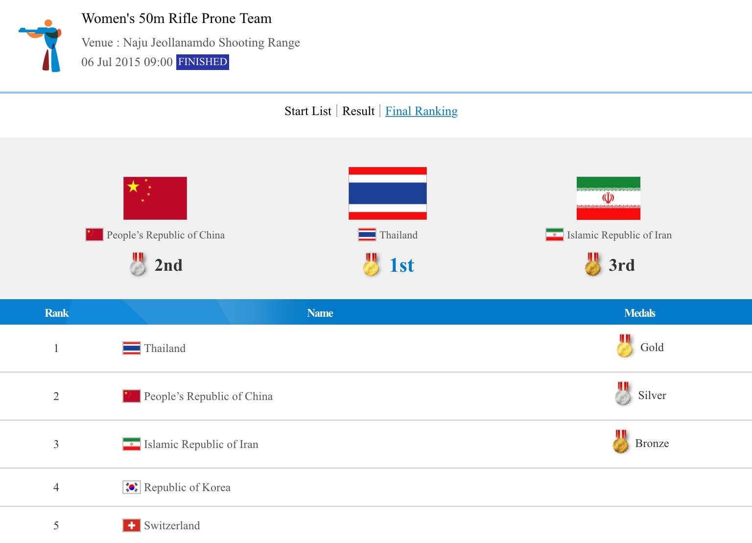 สรุปอันดับเหรียญรางวัล ถึงวันที่ 6 กค 58