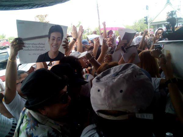 บรรยากาศช่วงสาย ขณะรอคำตัดสิน ซึ่งทีมทนายแจ้งว่า ในห้องพิจารณาคดี มีตัวแทนสถานฑูตฝรั่งเศส เบลเยี่ยม อเมริกา สวีเดน ออสเตรเลีย เข้าร่วมสังเกตการณ์ด้วย