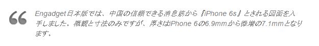 แปลได้ว่า Engadget ได้รับแผนภาพของ iPhone 6s จากแหล่งช่าวที่น่าเชื่อถือจากประเทศจีน โดยแผนภาพดังกล่าวแสดงให้เห็นว่าดีไซนืนั้นไม่ต่างไปจาก iPhone 6 แต่จะมีความหนาของเครื่องที่เพิ่มขึ้นจากเดิม 6.9 มม เป็น 7.1 มม