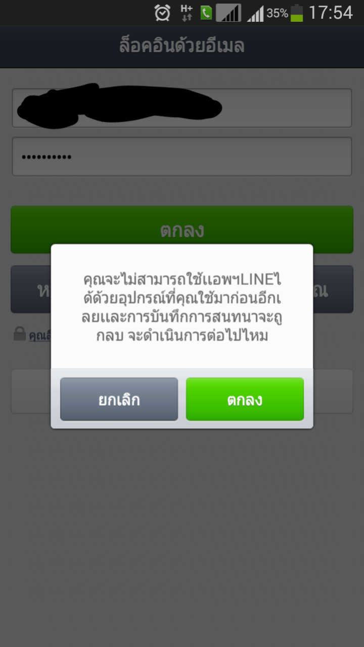 จากนั้นก็เข้าไปล็อคอินอีเมลล์ เข้าไลน์ปกติ ก็มีข้อความขึ้น "คุณจะไม่สามารถใช้แอพฯ line ได้ด้วยอุปกรณ์ที่คุณใช้มาก่อนอีกเลย และการบันทึกการสนทนาจะถูกลบจะดำเนินการต่อไปไหม" ด้วยความรีบก็เลยกดตกลงไปไม่ได้คิดอะไร มันก็เด้งกลับไปให้ใส่อีเมลล์เหมือนเดิม พอใส่อีเมลล์ใหม่ก็ยังเหมือนเดิมค่ะ อยากรู้วิธีแก้ไข ที่เสียดายไม่ได้เสียสติกเกอร์ เสียดายเพื่อนมากกว่าอะค่ะ ช่วยทีนะคะ