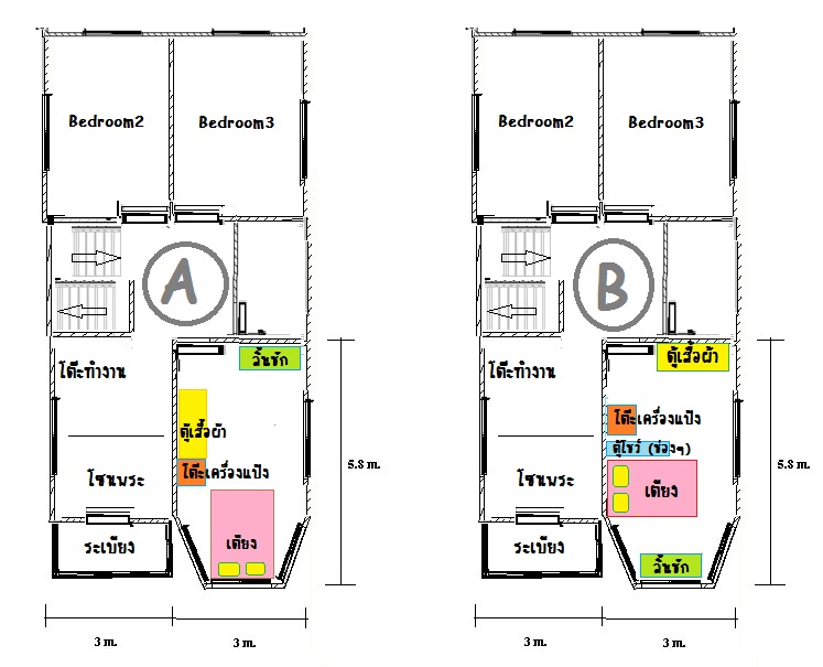 จากรูป A กับ B จะจัดห้องนอนแบบไหนดีคะ