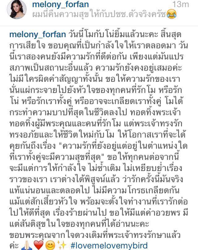 คุณพ่อโสภณ พัชรวีระพงษ์ วอนสังคมเข้าใจ โตโน่ แตงโม ยืนยัน โตโน่ ดูแล แตงโม เป็นอย่างดีตลอดเวลาที่ผ่านมา เชื่อทั้งคู่เจ็บปวดกับความรักที่สิ้นสุดลง ขอแฟนคลับอย่าซ้ำเติมทั้ง 2 ฝ่าย ยังคงเป็นประเด็นที่ม