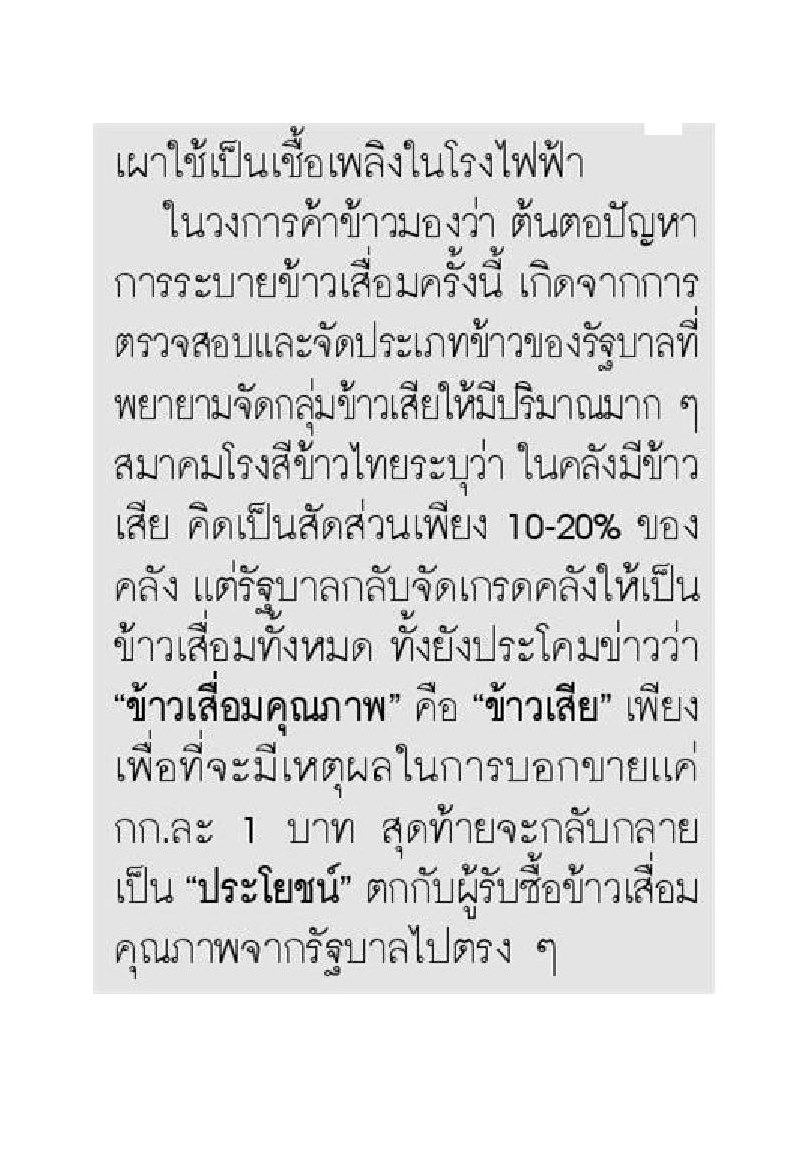 ใครอยู่เบื้องหลังโรงไฟฟ้าชีวมวล ในวงการค้าข้าวมีการตั้งข้อสังเกตว่าข้าวเสื่อมลอตนี้จะกลายเป็น"ขุมทรัพย์"แห่งใหม่ให้กับผู้ประกอบการค้าข้าวบางกลุ่มเท่านั้นจากการสอบถามไปยังวงการค้าข้าวพบว่า ข