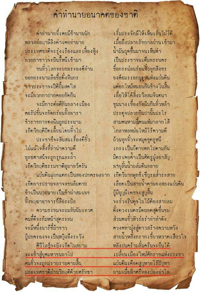 คำทำนายอนาคตชาติ ใคร ๆ ก็คงเคยอ่านมาแล้ว แต่มาอ่านแบบเก่า ๆ มันขลังดี