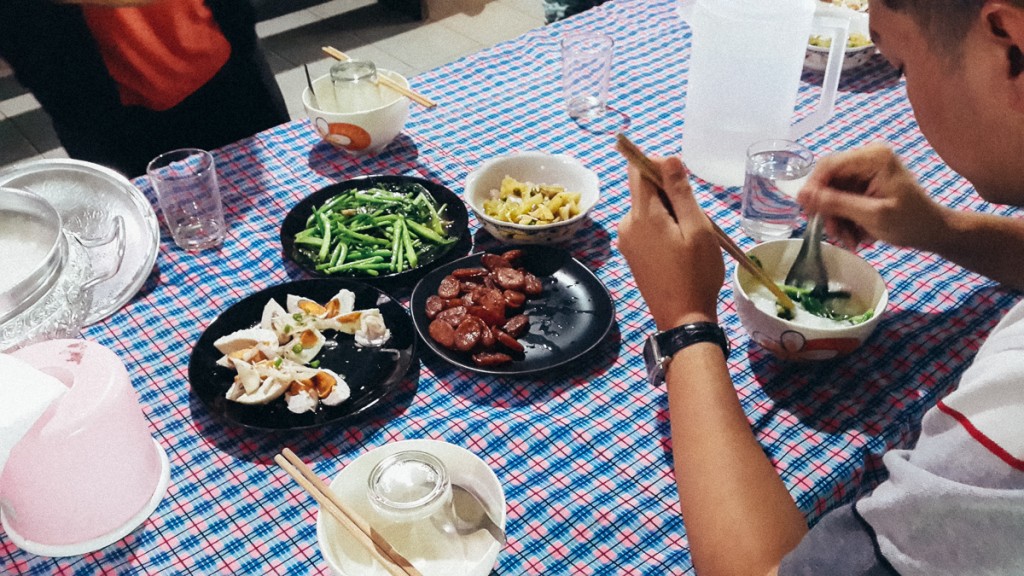 มื้อเช้าเป็นบุฟเฟ่ข้าวต้มและกับข้าวอีกสามสี่อย่าง กินพออิ่มนะ เพราะล่องเรือทั้งวัน จะเข้าห้องน้ำลำบาก