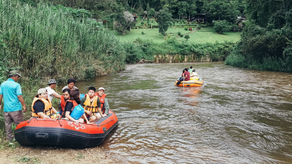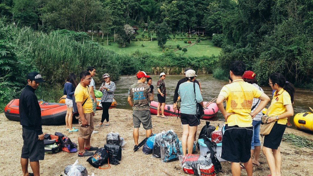 หลังจากกินข้าวและเปลี่ยนเสื้อผ้าเป็นชุดพร้อมเปียก ไกด์จะให้ถุงเราห่อกระเป๋าที่เตรียมไป กันน้ำระหว่างล่องเรือ (บางช่วงน้ำแรง บางช่วงเจอน้ำตกกระเด็นใส่ และปกติเรือยางจะมีน้ำไหลเข้ามาที่พื้นตลอด)