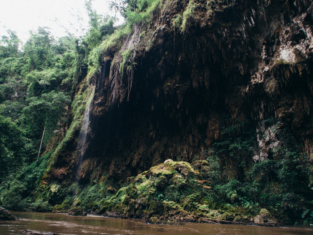 เมื่อเรือล่องมาจนถึง น้ำตกทีลอจ่อ เราจะเจอม่านน้ำตกอลังการพอสมควร ยิ่งถ้ามาหน้าน้ำเยอะๆ จะสวยมากครับ สามารถพายเรือลอดเข้าไปใต้น้ำตกได้