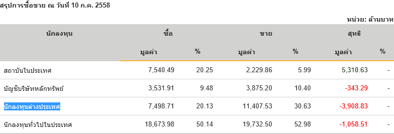 Sinthorn Summary 10/7/2558 : ต่างชาติขายสุทธิ -3,908.83 ลบ.
