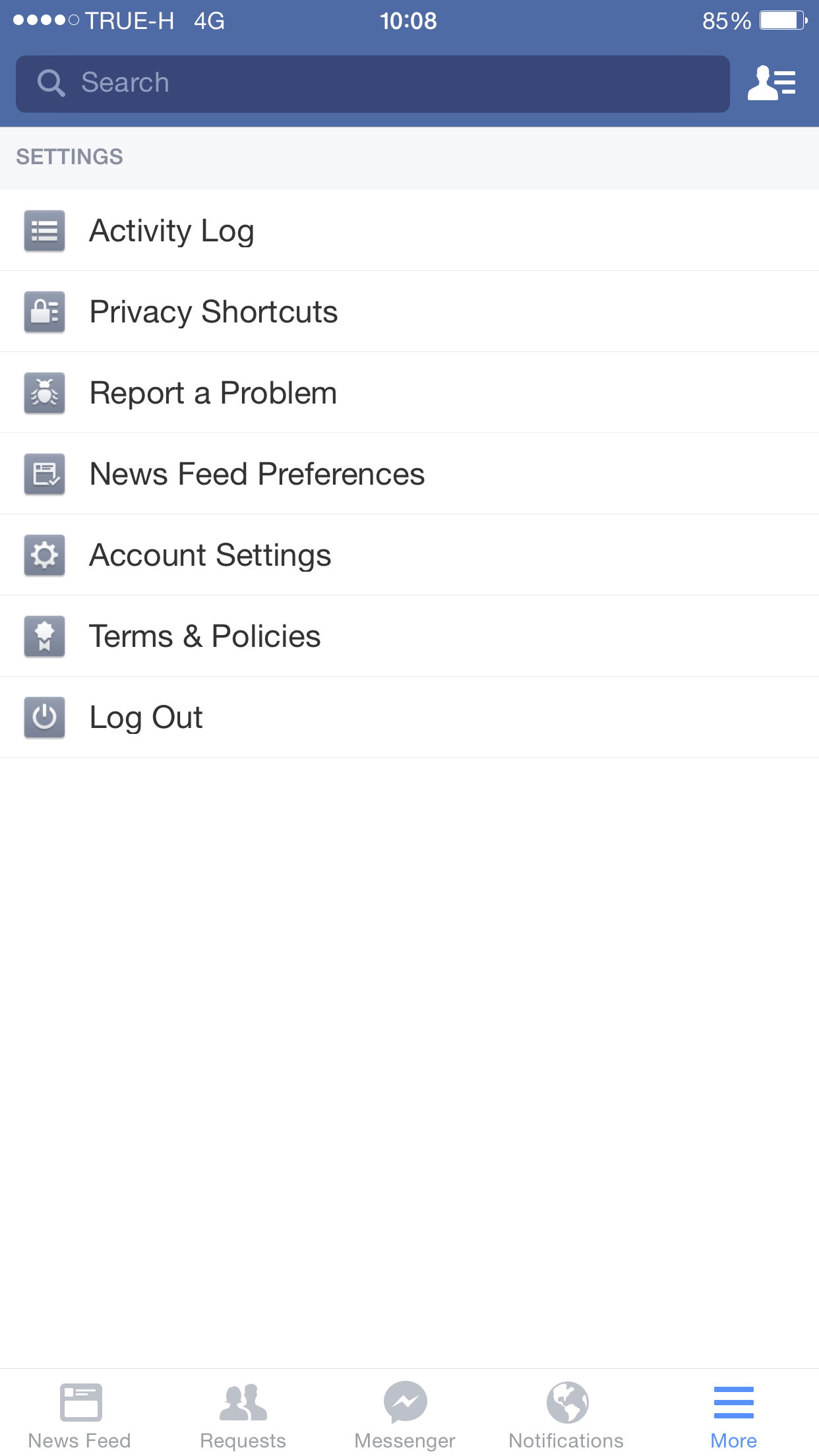 ไม่รุไปกดโดนอะไรคะ แอพเฟซบุคตรง "more" ปุ่มขวาสุดด้านล่าง เหนือ setting มันหายไปหมดเลยค่ะ ทำไงให้มันกลับมาอะคะ ลองดูภาพประกอบเนอะ