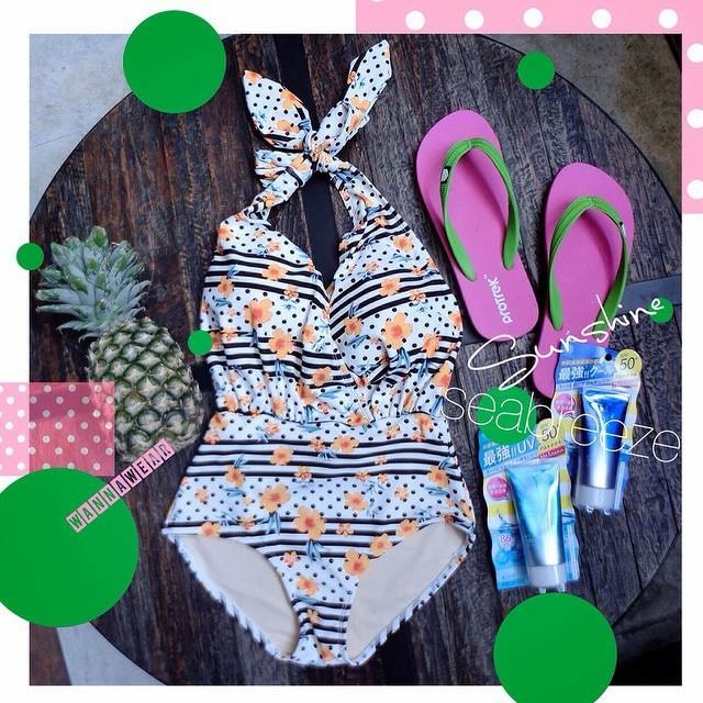 ชุดว่ายน้ำวันพีชลายดอก น่ารักมากค่ะ ของแบรนด์ Wanna Wear ดีไซน์เก็บก้นเก็บพุงเป๊ะมากค่ะ ตัวนี้ไซส์ S ช่วงอกเป็นฟรีไซส์ผูกคอ เปิดหลังค่ะ ส่วนช่วงสะโพก ขนาดอยู่ที่30-34"ค่ะ