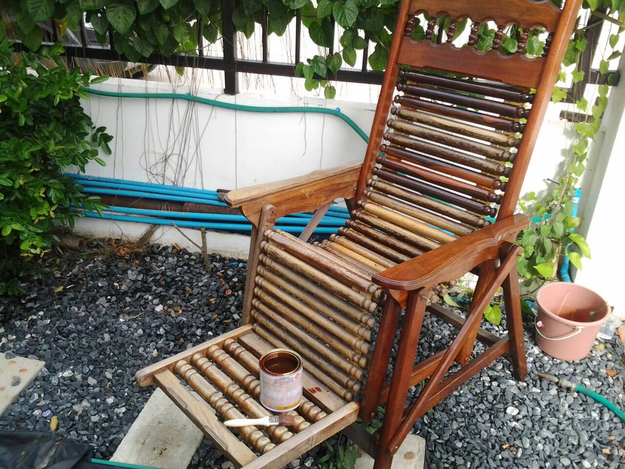 อันนี้ผมทารอบเดียวบางๆ ใช้เวลาทา 35 นาทีเสร็จ ยังไม่ได้ทาซ้ำ เพราะแดดไล่ เด้ววันอื่นค่อยมาทาต่อรอบสอง รอให้มันแห้งสนิดด้วย อีกอย่าผมไม่ได้ปิดตะหมูก เริ่มเมาสีแล้วครับ (หนามยอกมันต้องเอาหนามตำ ซินะ โบราณท่านว่าไว้ จัดปายยยย)
