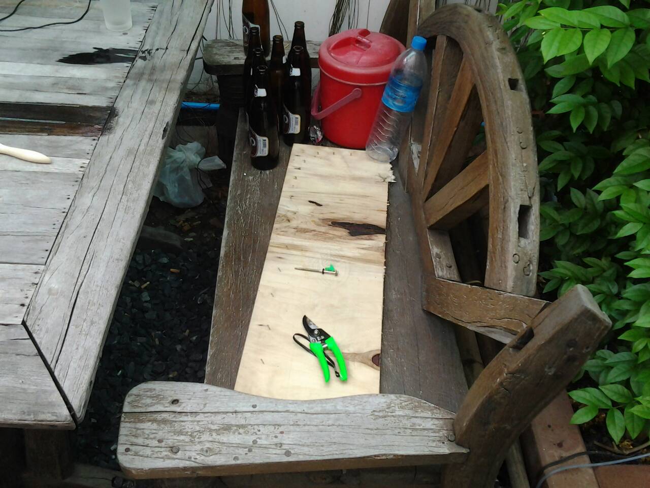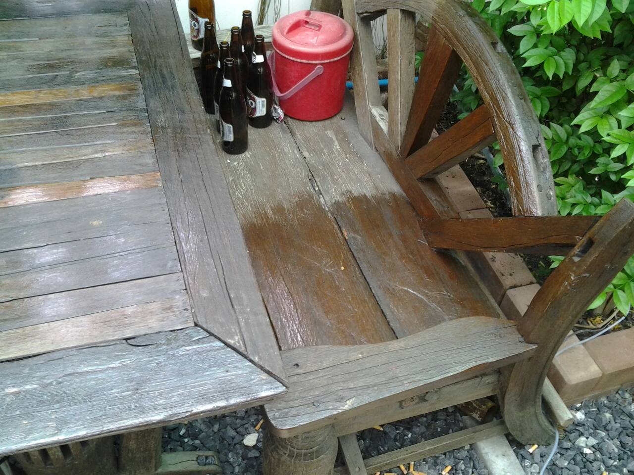 ตอนนี้เลยไม่รู้ว่ามันมึนอะไร เดินเข้ามาในสวน เพื่อเติมพลัง ดันทำสีหยดใส่โต๊ะ เกิดอาการโมโหขึ้นมาอีก