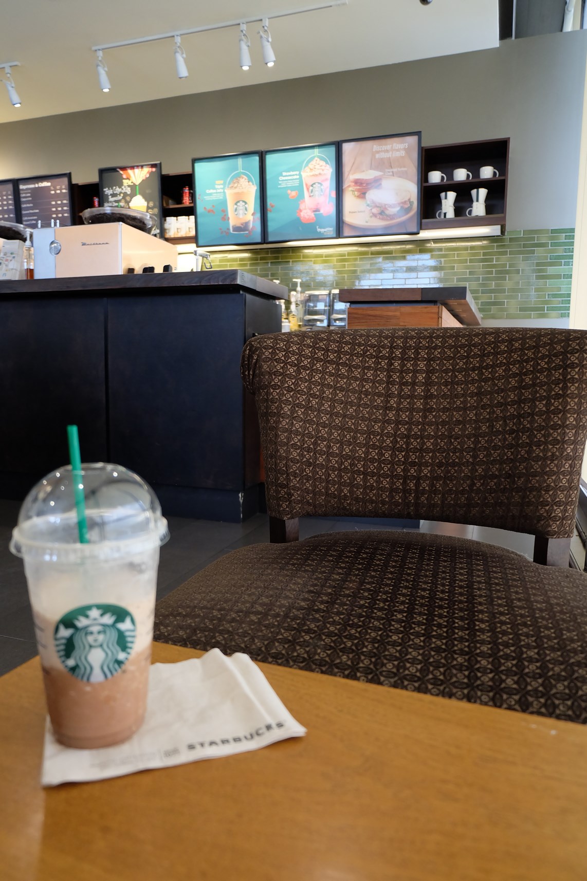 เสร็จแล้วก้อเอาสัมภาระใส่รถเข็น เดินไปหาสตาร์บัคส์ก่อนเลย ผมนี่.. หิวกาแฟมากฮะ.. นั่งซ้อมใช้กล้องให้ชำนาญ น้องชายเพิ่งสอนเมื่อคืน ออกแนวเกร็ง ๆหน่อย แต่ก็ทำได้ดีนะเรา
