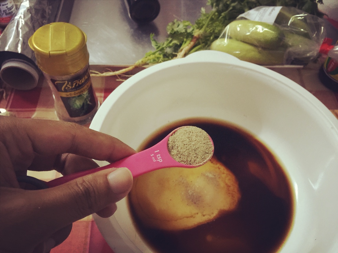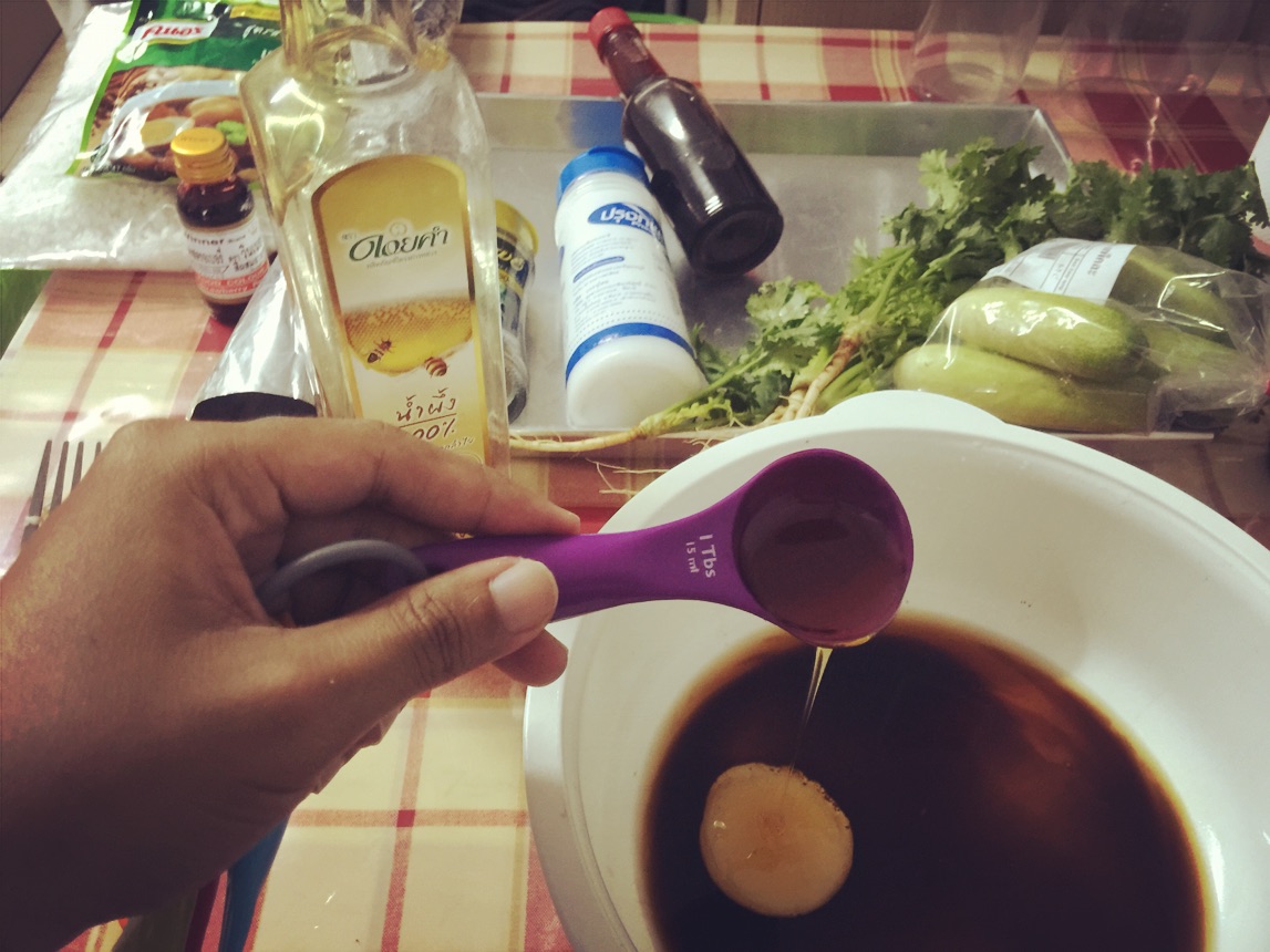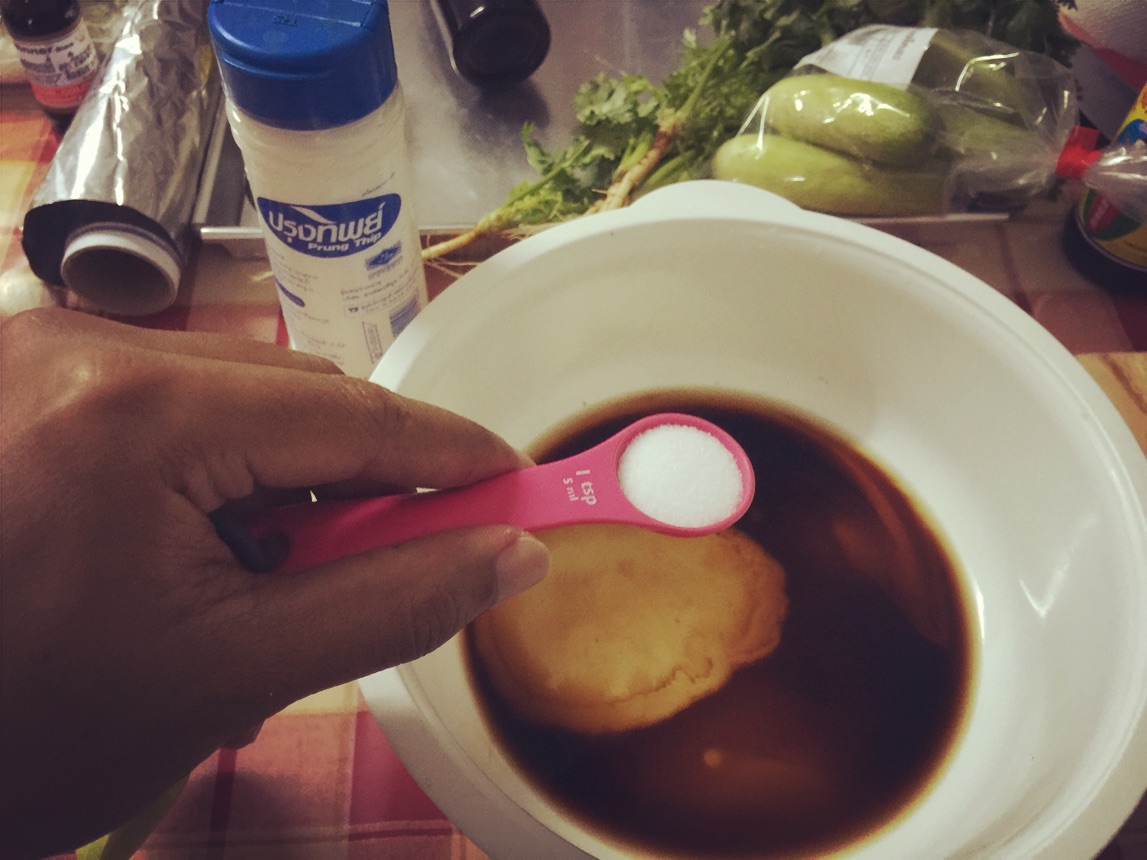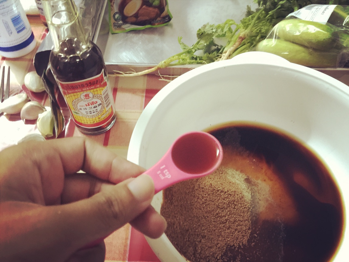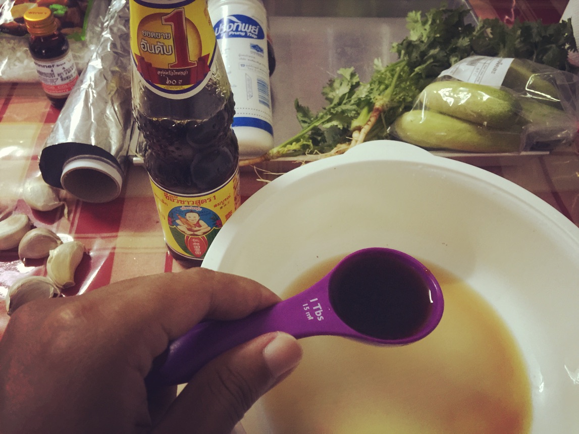 3. ตามด้วยซีอิ๊วขาว 1 ช้อนโต๊ะ