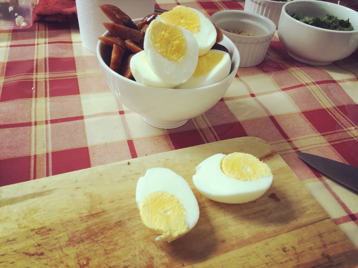 สุดท้ายท้ายสุดไข่ต้มกับกุนเชียงครับ ผมเอากุนเชียงอบพร้อมหมูแดง 10 นาที จะได้ไม่อ้วน(ไปกว่านี้)หลีกเลี่ยงการทอดครับ 555