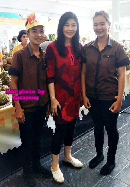 หลานสาว ไลน์ส่งมาให้ เธอบอกว่าดีใจและตื่นเต้นมาก ท่านนายก Yingluck Shinawatra สวยมากๆ at HuaHin Market Village