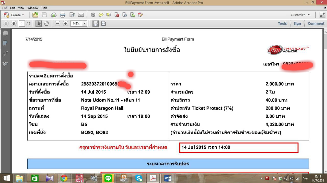 (รูปเป็นหน้าจอง เพราะว่าฝากพี่สาวจ่าย แต่ปริ้นออกมาชำระแล้วเรียบร้อยแล้ว)