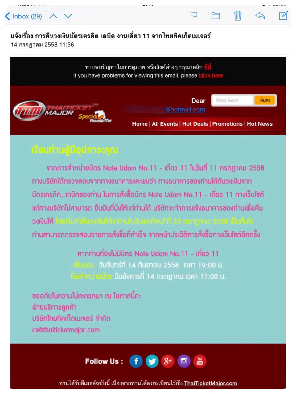ปรากฏว่าวันนี้ได้รับเมล์จาก Thai ticket มาแบบนี้
