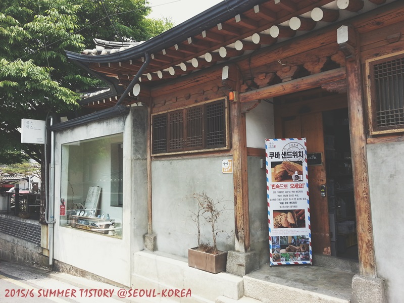 จากอีกด้านนึงถึงจะเหนว่าชื่อร้านเขียนว่า 북스쿡스 เมนูหน้าร้านนี่อ่านว่า คิวบาแซนด์วิช แต่เราไม่ได้ลอง