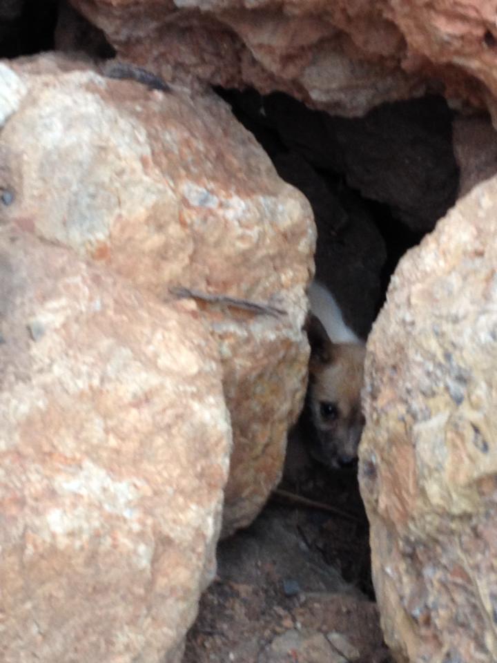 ขณะนี้ช่วยออกมาได้ 2 ตัวน้อย ยังจับไม่ได้อีกสอง ลำบากมากๆค่ะ ต้องปีนกองดินชื้นๆ ไปมุดซอกหาแล้วดึงออกมา