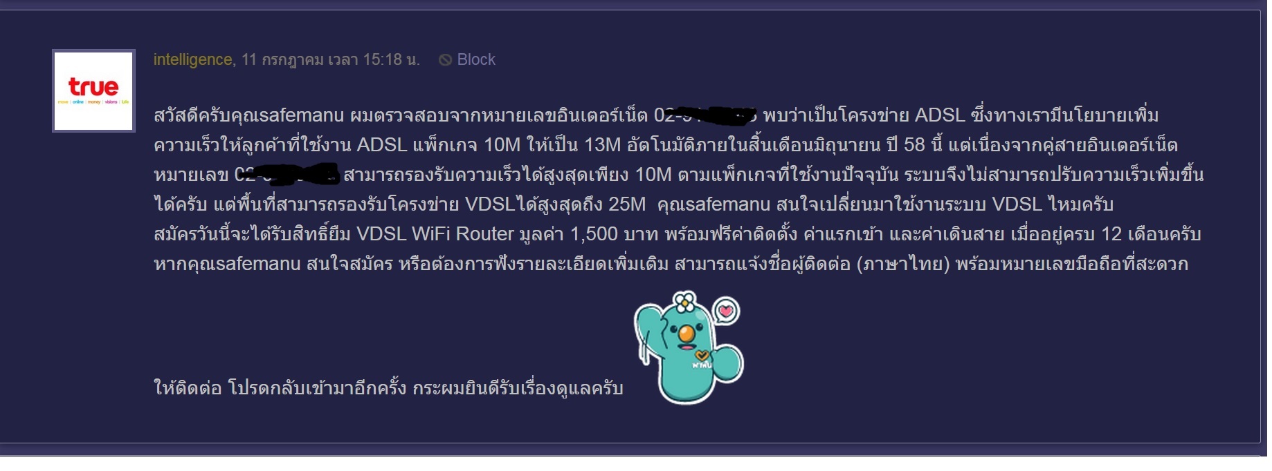 ใครคิดจะติด True คิดให้ดีก่อนนะครับ บริการหลังขาย ของเขา ห่วยที่สุด