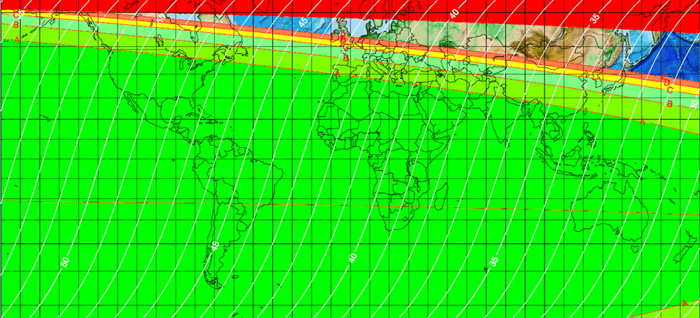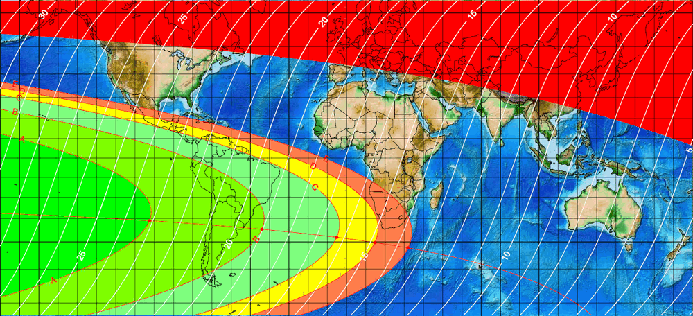แล้วไทยอยู่ในเขต F เมื่อดวงอาทิตย์ลับขอบฟ้านั้น ดวงจันทร์อยู่ในองศาที่ต่ำเกินไป แสงอาทิตย์ยังเจิดจ้าอยู่ มีเวลาให้ดูแค่ไม่กี่นาที