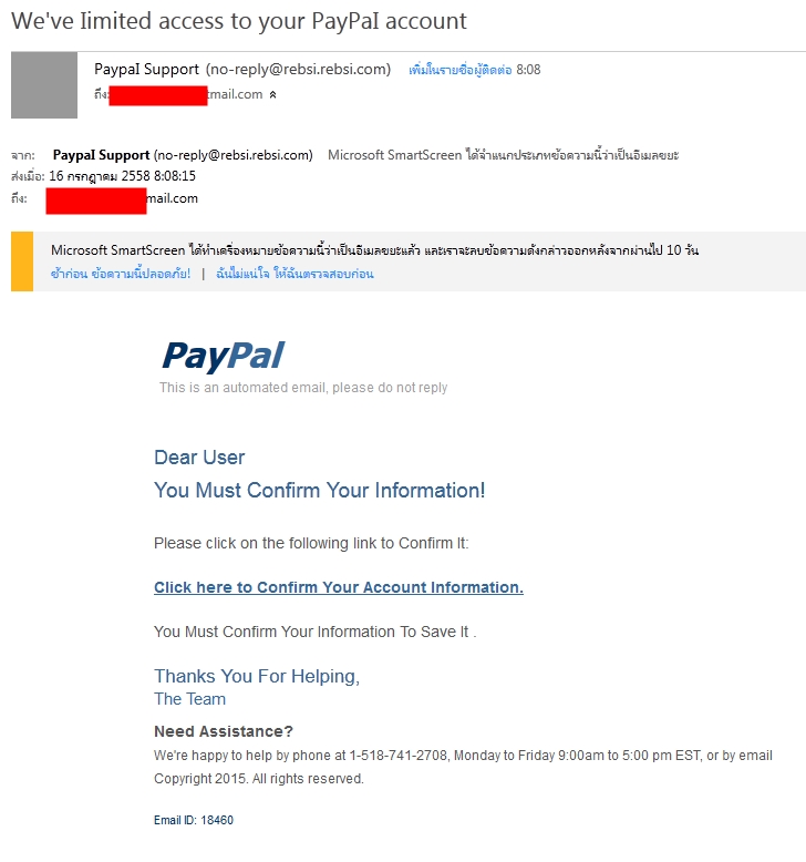 ขยันส่งมา..ในขยะอีเมล์..จะให้ยืนยันอย่างเดียว...