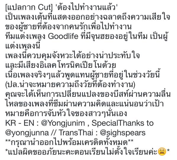 จะมาในชื่อเพลง "일하러가야돼" แปลไทยก็คือ "ต้องไปทำงานแล้ว"